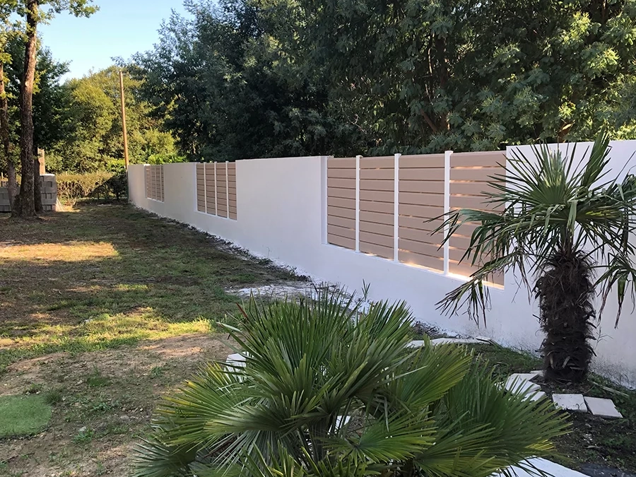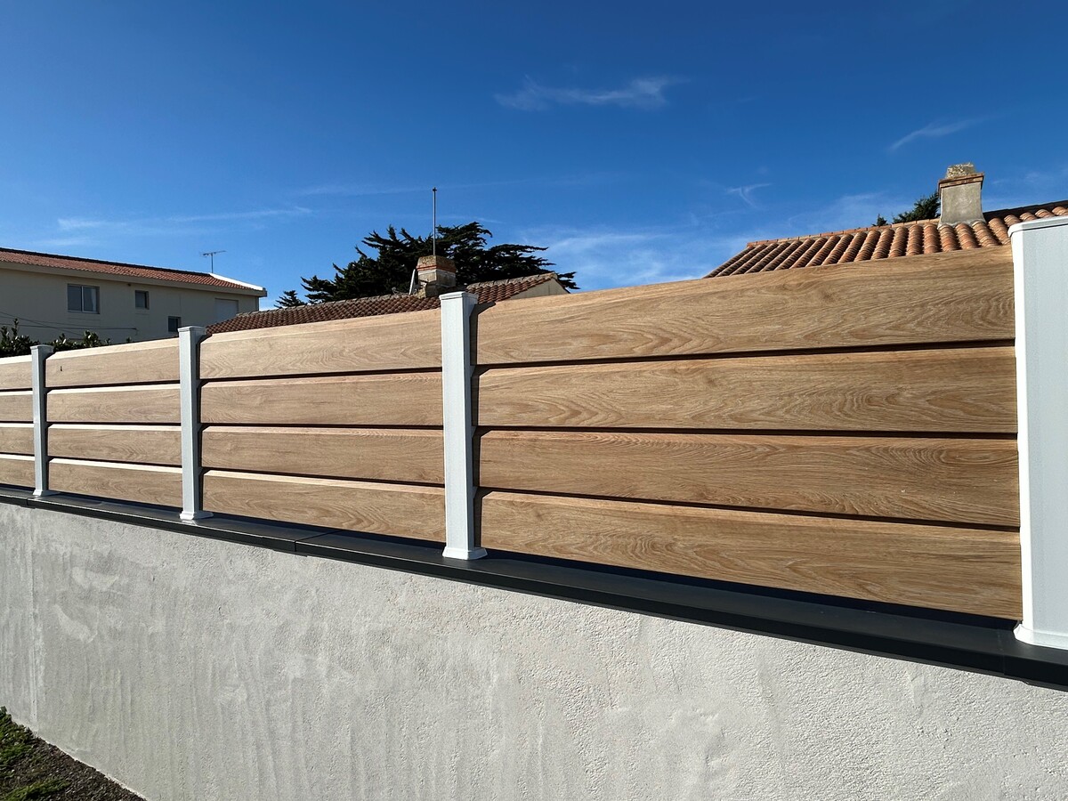 Vous pouvez aussi mixer les matériaux et ajouter du Loryza. Eco responsable et garanti 15 ans, il apportera un aspect naturel à votre clôture. Il s’agit d’un matériau fabriqué à partir de cosse de riz, il offre le toucher et l’aspect du bois, sans ses contraintes.